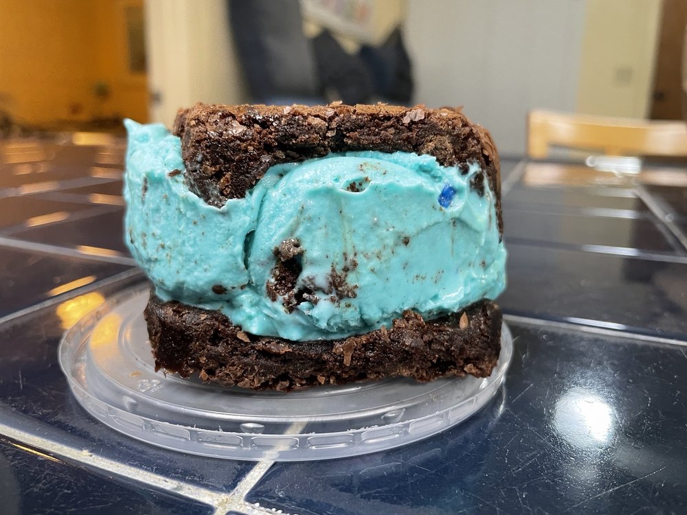Vegan/Gluten-Free Fudgy Brownie Cookie with our Vegan/Gluten-Free Vanilla Chocolate Chip Ice Cream (Oat Base). (No Substitutions)